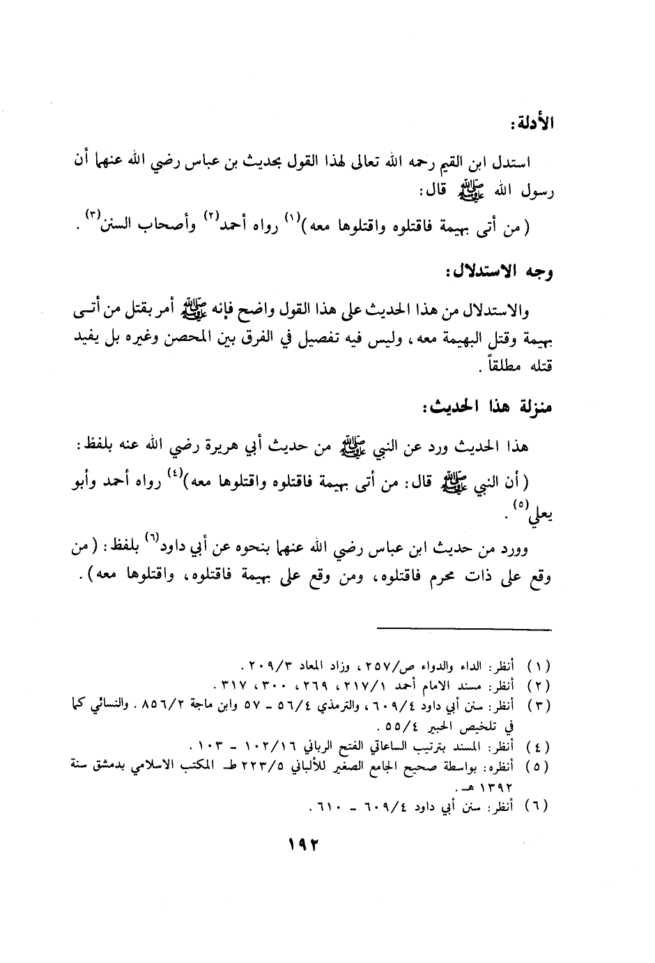 (من أتى بهيمة فاقتلوه واقتلوها معه) (1) رواه أحمد (2) وأصحاب السنن (3) .