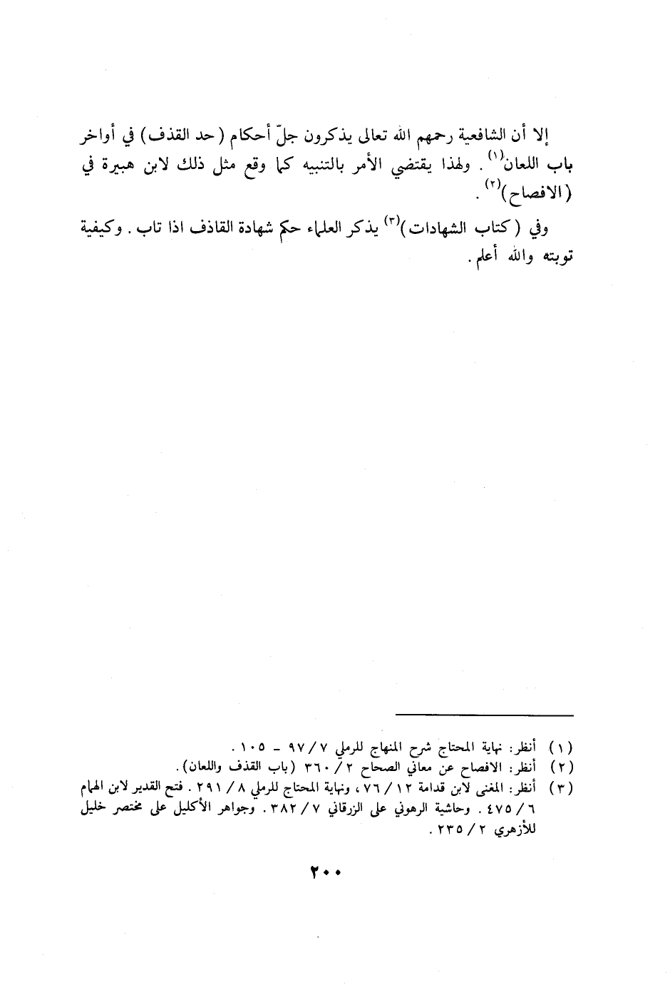 إلا أن الشافعية رحمهم الله تعالى يذكرون جلّ أحكام (حد القذف) في أواخر باب اللعان (1) . ولهذا يقتضي الأمر بالتنبيه كما وقع مثل ذلك لابن هبيرة في الإفصاح (2) .