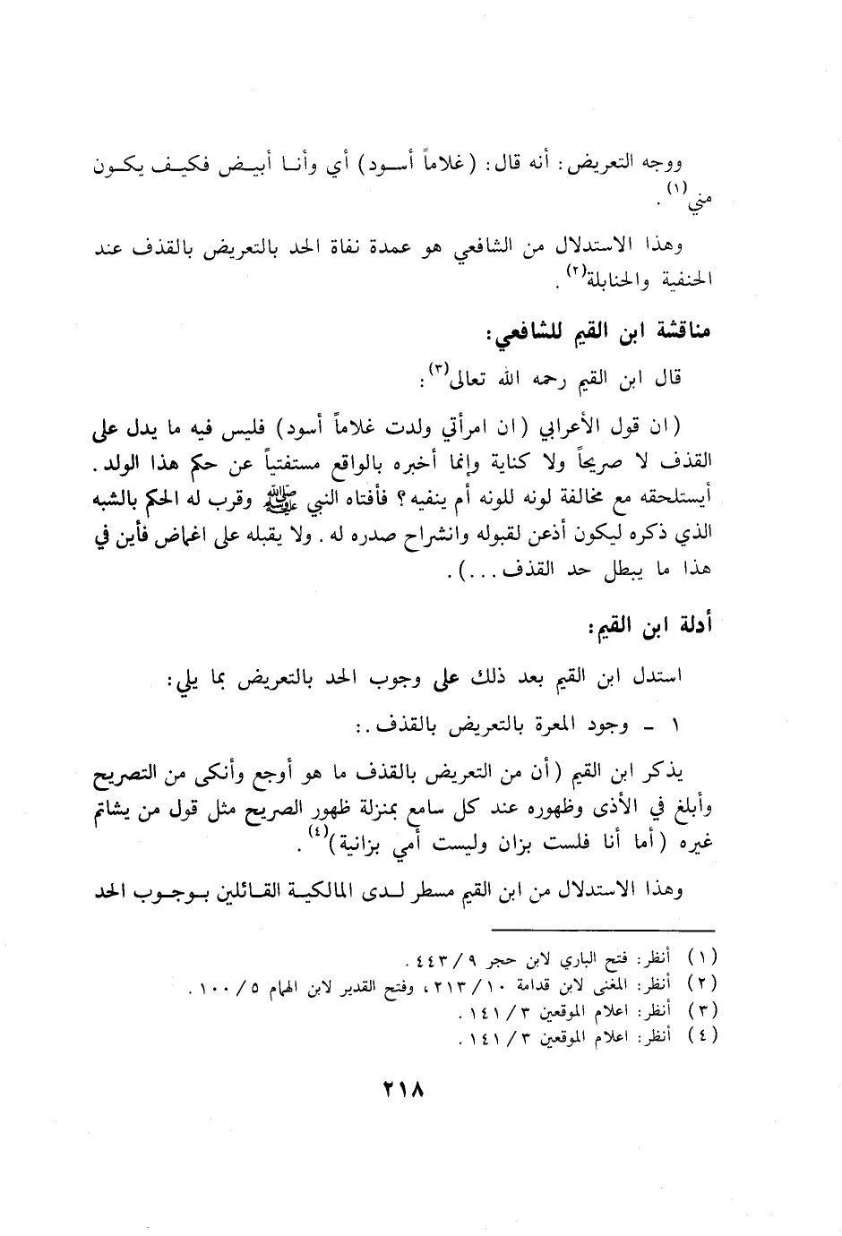 استدل ابن القيم بعد ذلك على وجوب الحد بالتعريض بما يلي: