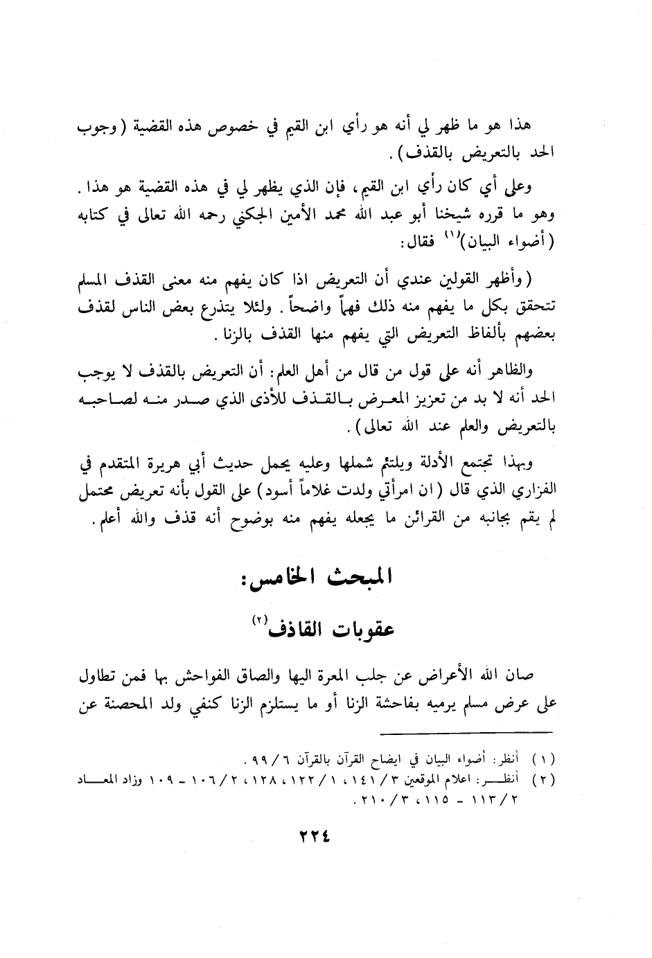 (وأظهر القولين عندي أن التعريض إذا كان يفهم منه معنى القذف المسلم تتحقق بكل ما يفهم منه ذلك فهماً واضحاً. ولئلا يتذرع بعض الناس لقذف بعضهم بألفاظ التعريض التي يفهم منها القذف بالزنا.