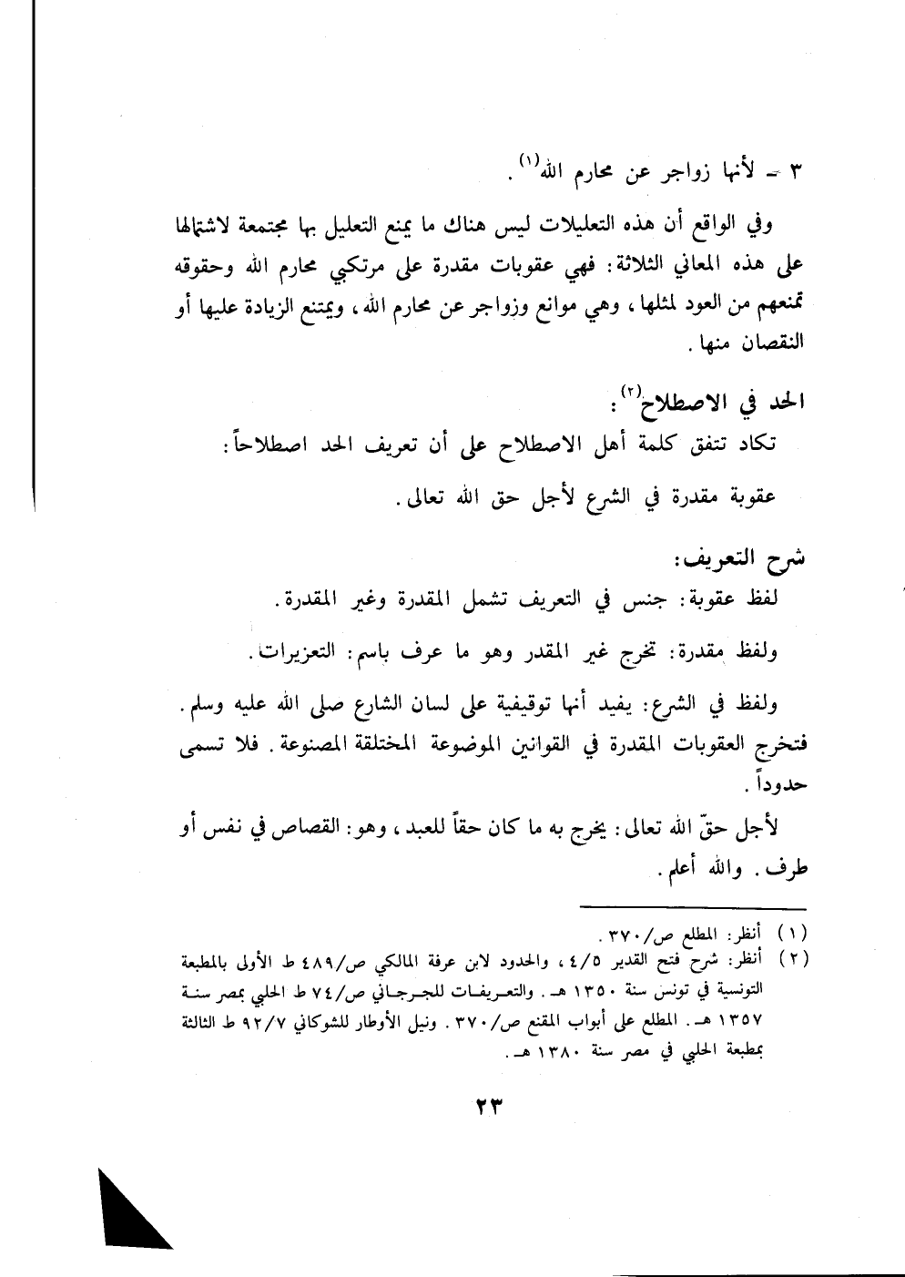 (2) انظر: شرح فتح القدير 5/4، والحدود لابن عرفة المالكي ص/489 ط الأولى بالمطبعة التونسية في تونس سنة 1350 هـ. والتعريفات للجرجاني ص/،7 ط الحلبي بمصر سنة 1357 هـ. المطلع على أبواب المقنع ص/ 370. ونيل الأوطار للشوكاني 92/7 ط الثالثة بمطبعة الحلبي في مصر سنة 1380 هـ.