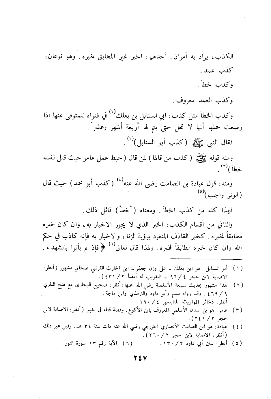 وكذب الخطأ مثل كذب: أبي السنابل بن بعلك (1) في فتواه للمتوفى عنها إذا وضعت حملها أنها لا تحل حتى يتم لها أربعة أشهر وعشراً.