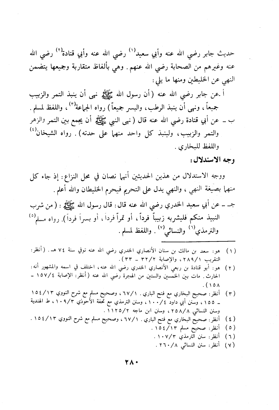 أ- عن جابر رضي الله عنه (أن رسول الله صلى الله عليه وسلم نهى أن ينبذ التمر والزبيب