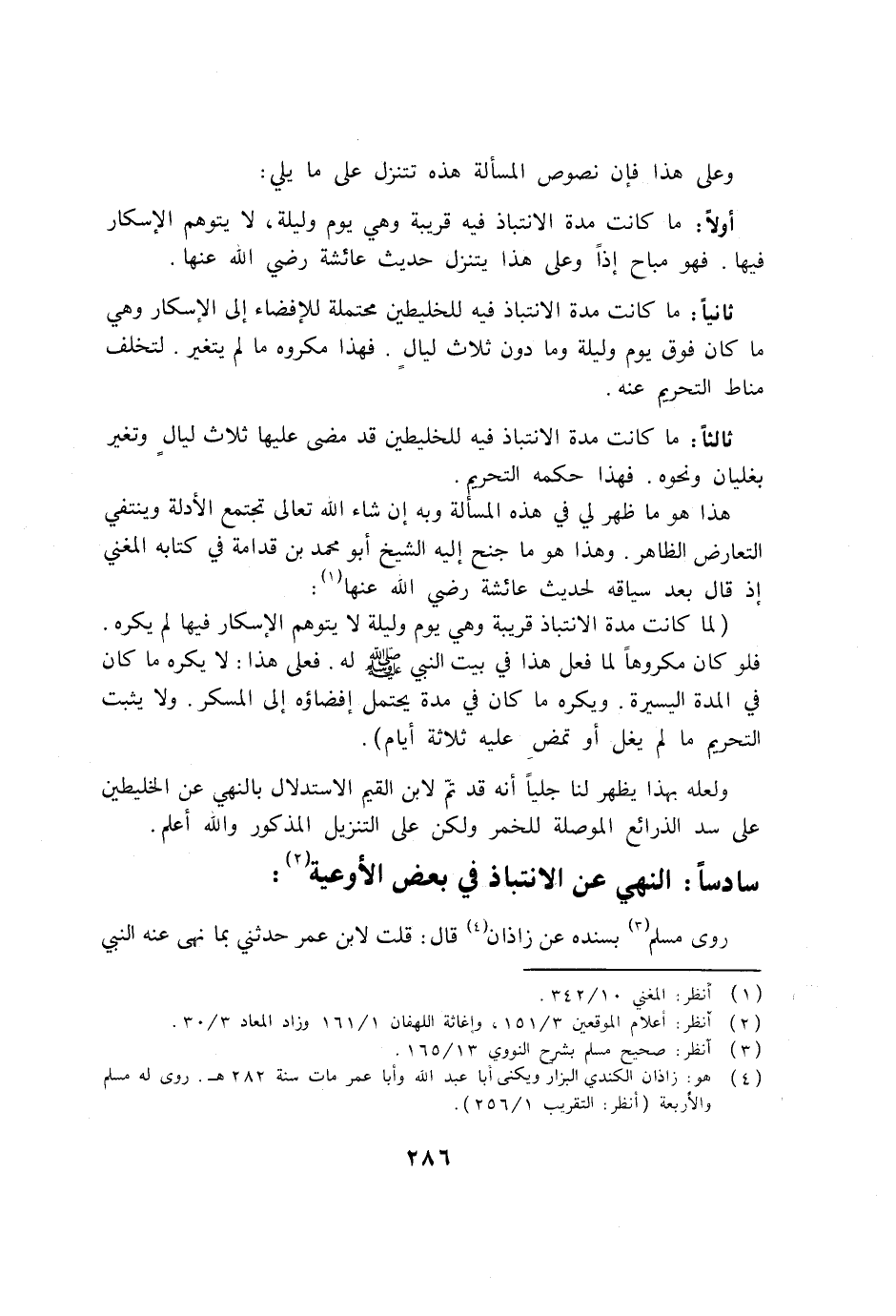 ولعله بهذا يظهر لنا جلياً أنه قد تمّ لابن القيم الاستدلال بالنهي عن الخليطين على سد الذرائع الموصلة للخمر ولكن على التنزيل المذكور والله أعلم.