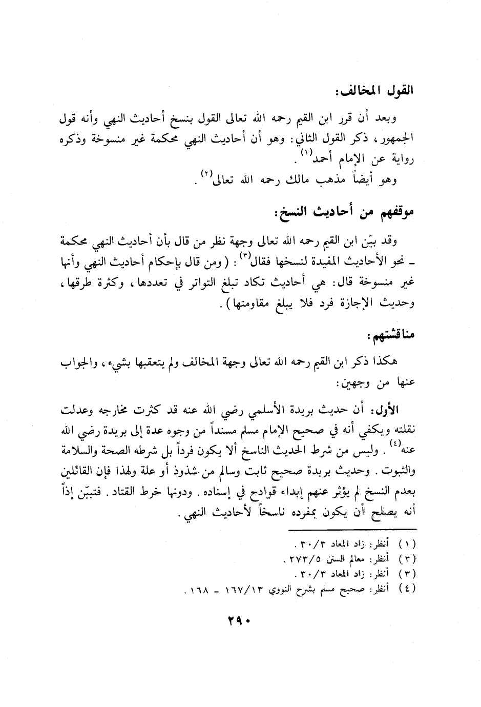 عنه (4) . وليس من شرط الحديث الناسخ ألا يكون فردا بل شرطه الصحة والسلامة والثبوت. وحديث بريدة صحيح ثابت وسالم من شذوذ أو علة ولهذا فإن القائلين بعدم النسخ، لم يؤثر عنهم إبداء قوادح في إسناده. ودونها خرط القتاد. فتبيّن إذاً