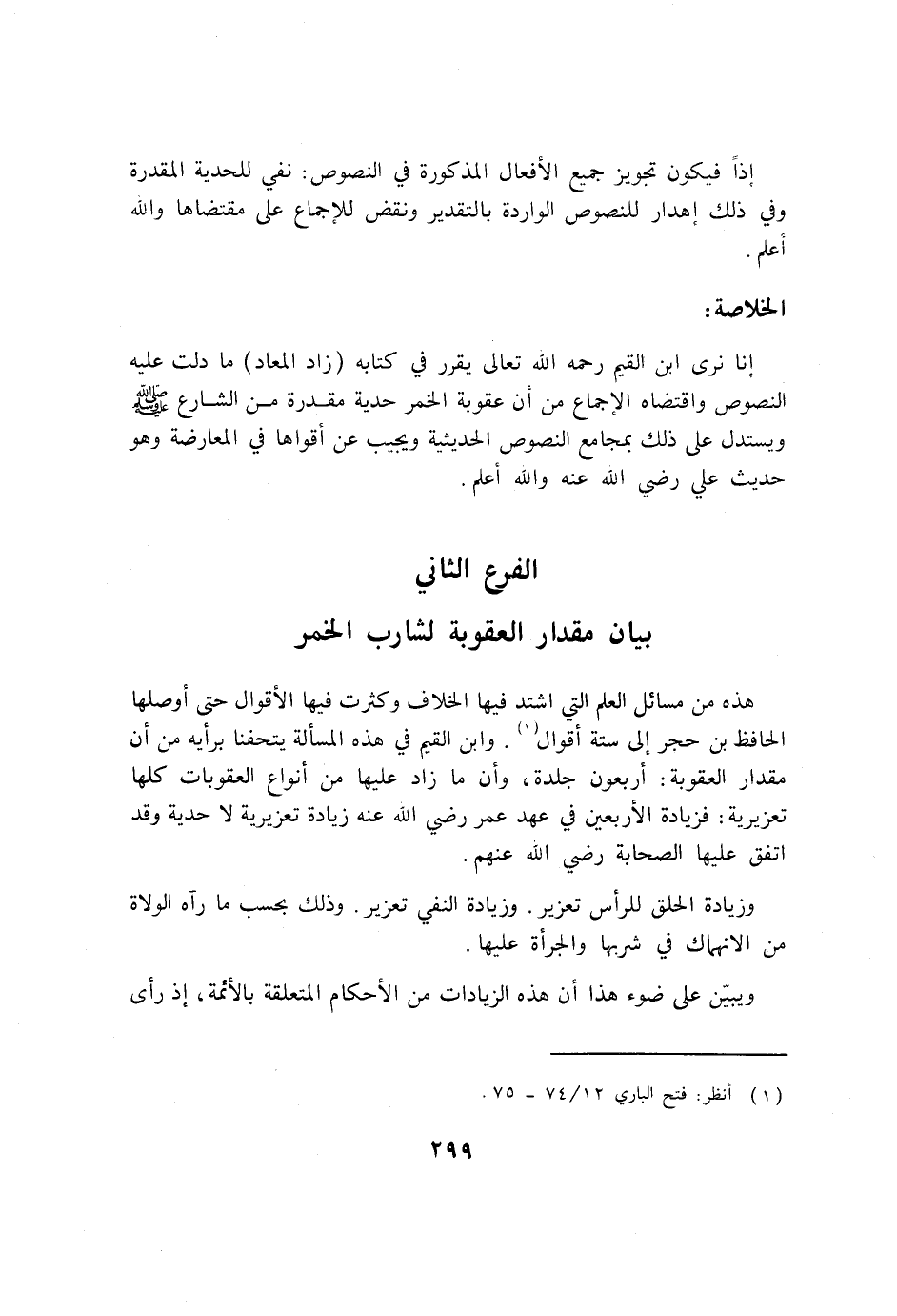 إنا نرى ابن القيم رحمه الله تعالى يقرر في كتابه (زاد المعاد) ما دلت عليه النصوص واقتضاه الإجماع من أن عقوبة الخمر حدية مقدرة من الشارع صلى الله عليه وسلم