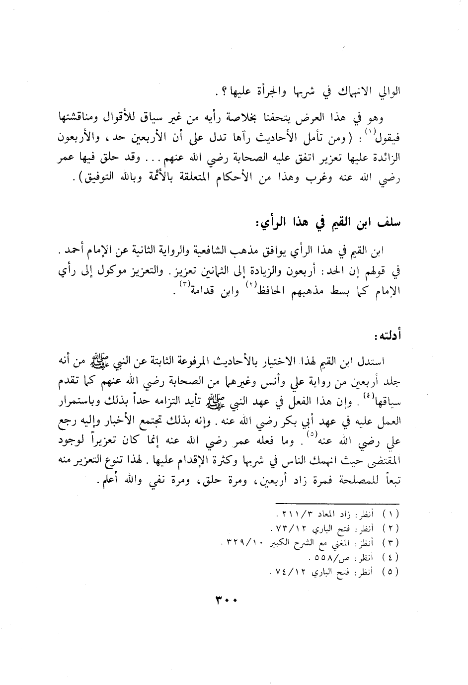 جلد أربعين من رواية علي وأنس وغيرهما من الصحابة رضي الله عنهم كما تقدم سياقها (4) . وإن هذا الفعل في عهد النبي صلى الله عليه وسلم تأيد التزامه حداً بذلك وباستمرار