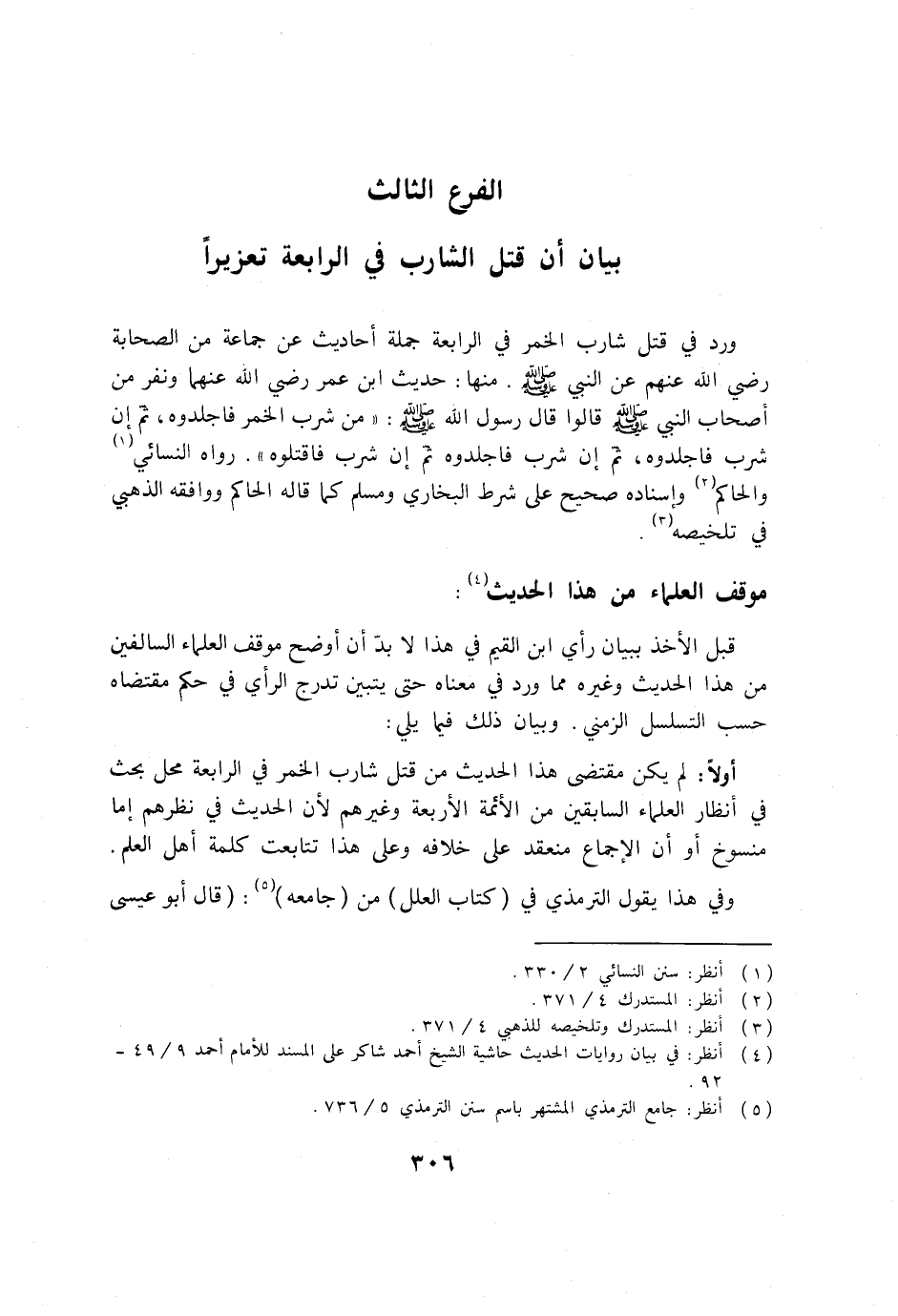 أولا: لم يكن مقتضى هذا الحديث من قتل شارب الخمر في الرابعة محل بحث