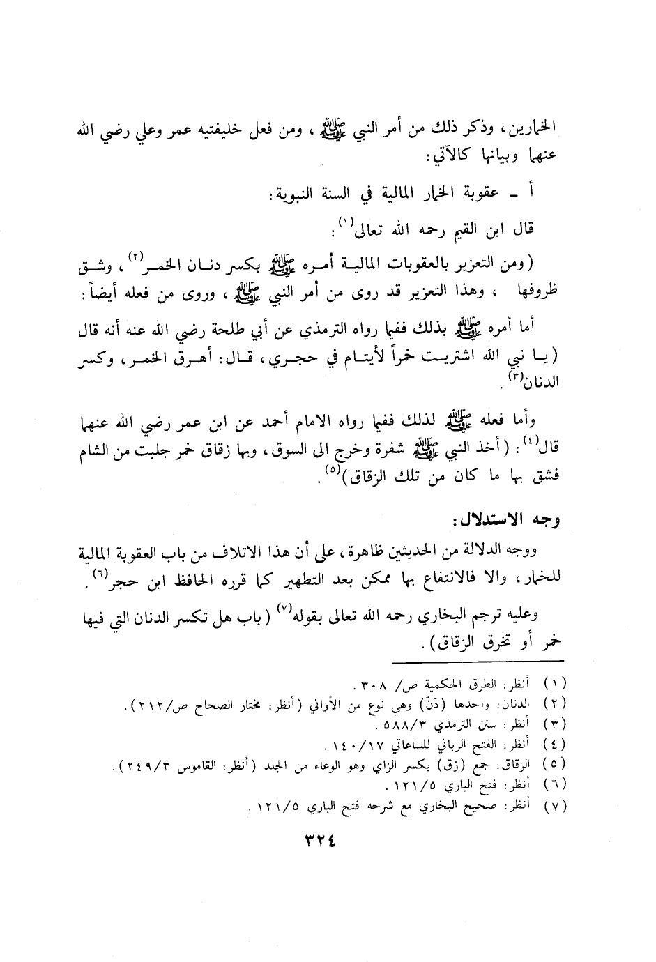 ووجه الدلالة من الحديثين ظاهرة، على أن هذا الإتلاف من باب العقوبة المالية للخمار، وإلا فالانتفاع بها ممكن بعد التطهير كما قرره الحافظ ابن حجر (6) . وعليه ترجم البخاري رحمه الله تعالى بقوله (7) (باب هل تكسر الدنان التي فيها