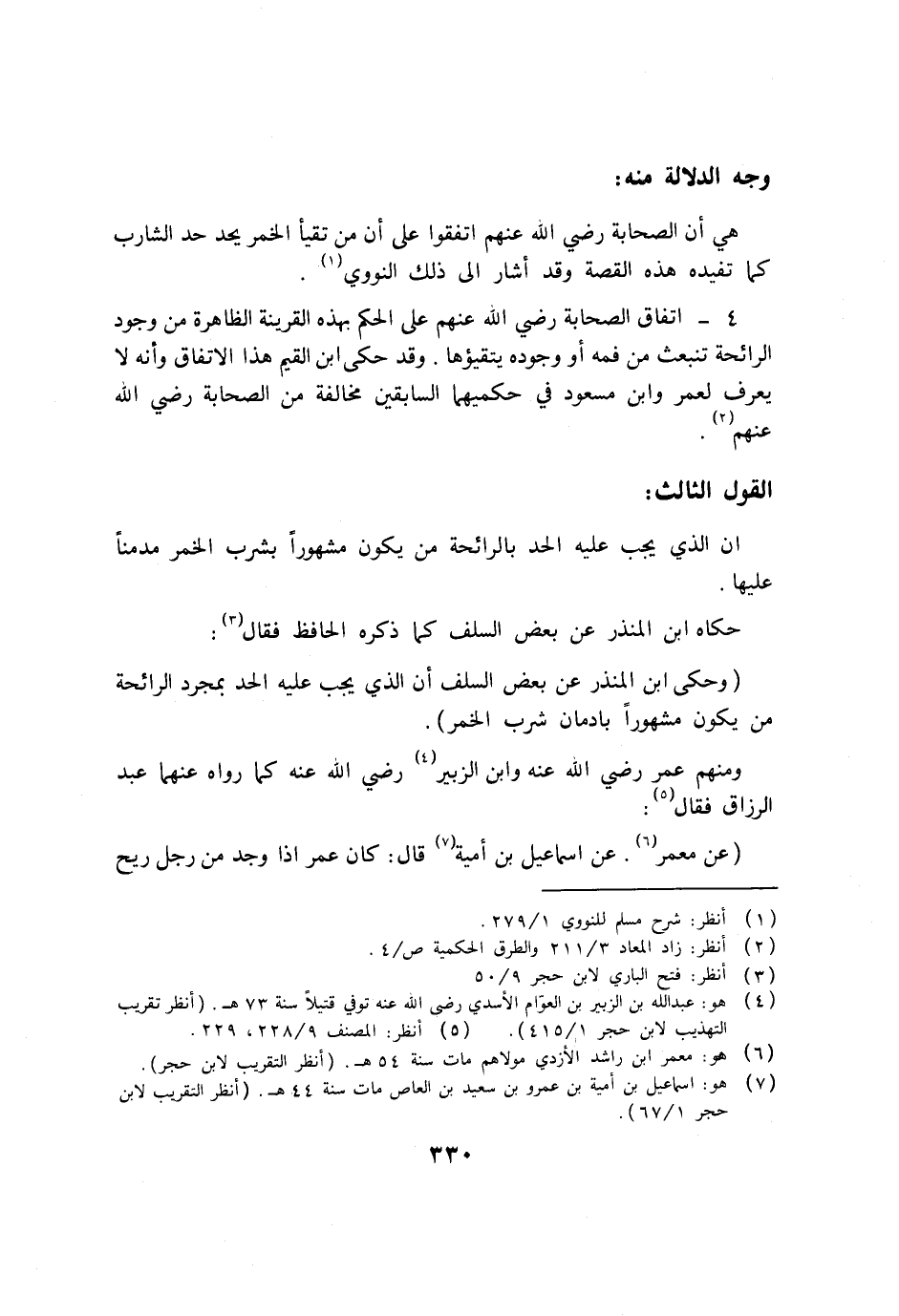 4- اتفاق الصحابة رضي الله عنهم على الحكم بهذه القرينة الظاهرة من وجود الرائحة تنبعث من فمه أو وجوده يتقيؤها. وقد حكى ابن القيم هذا الاتفاق وأنه لا يعرف لعمر وابن مسعود في حكميهما السابقين مخالفة من الصحابة رضى الله عنهم (2) .