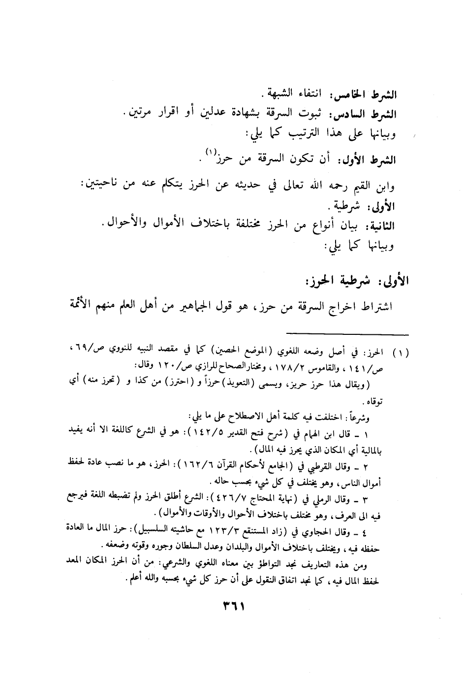 الأولى: شرطية الحرز: