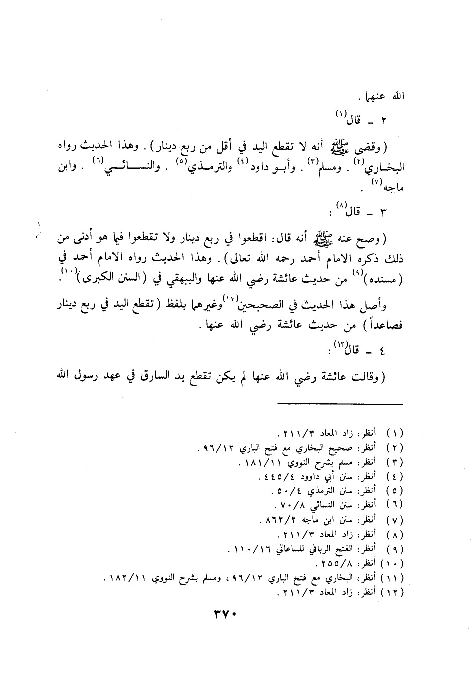 وأصل هذا الحديث في الصحيحين (11) وغيرهما بلفظ (تقطع اليد في ربع دينار فصاعداً) من حديث عائشة رضي الله عنها.