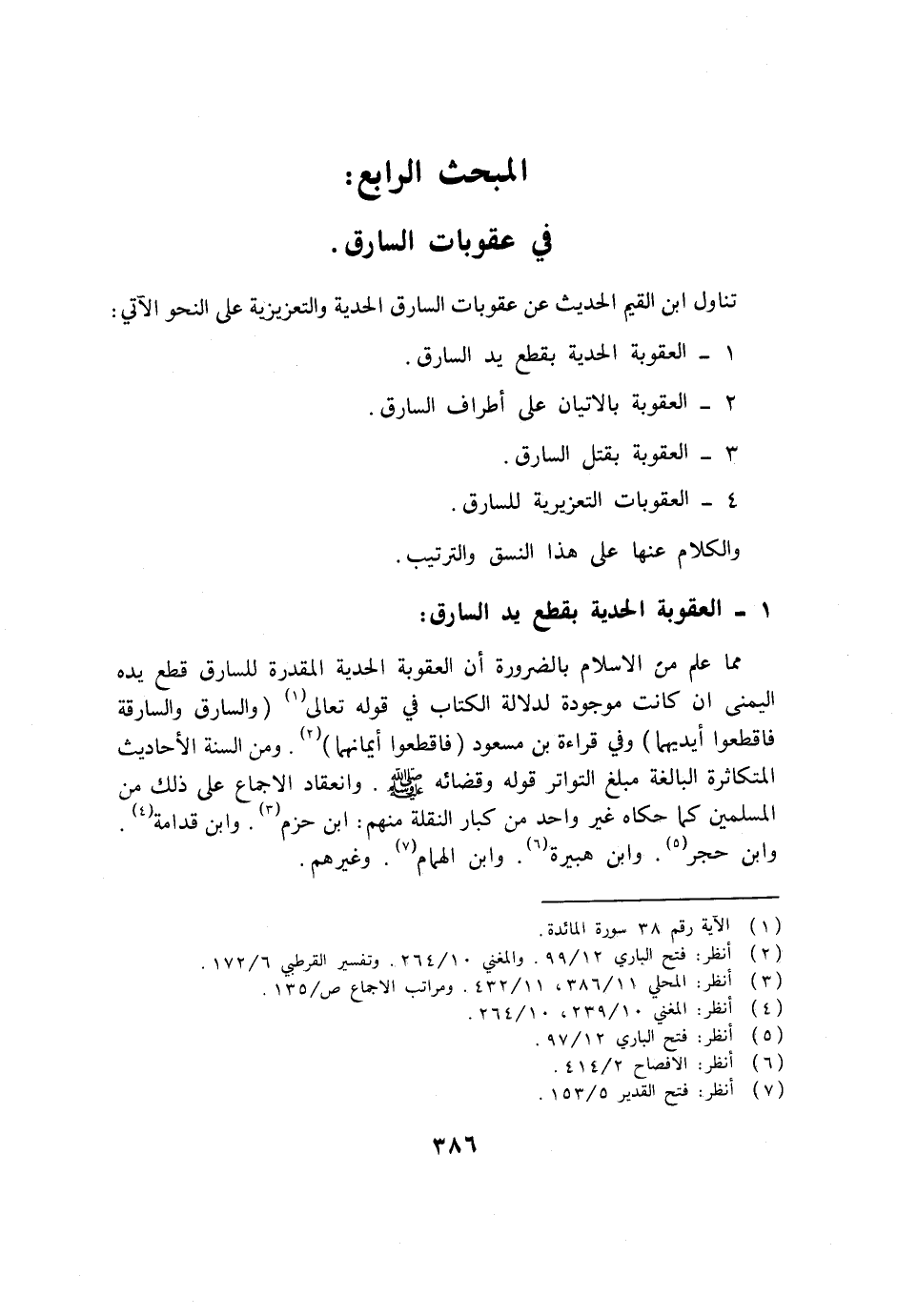 تناول ابن القيم الحديث عن عقوبات السارق الحدية والتعزيرية على النحو الآتي: