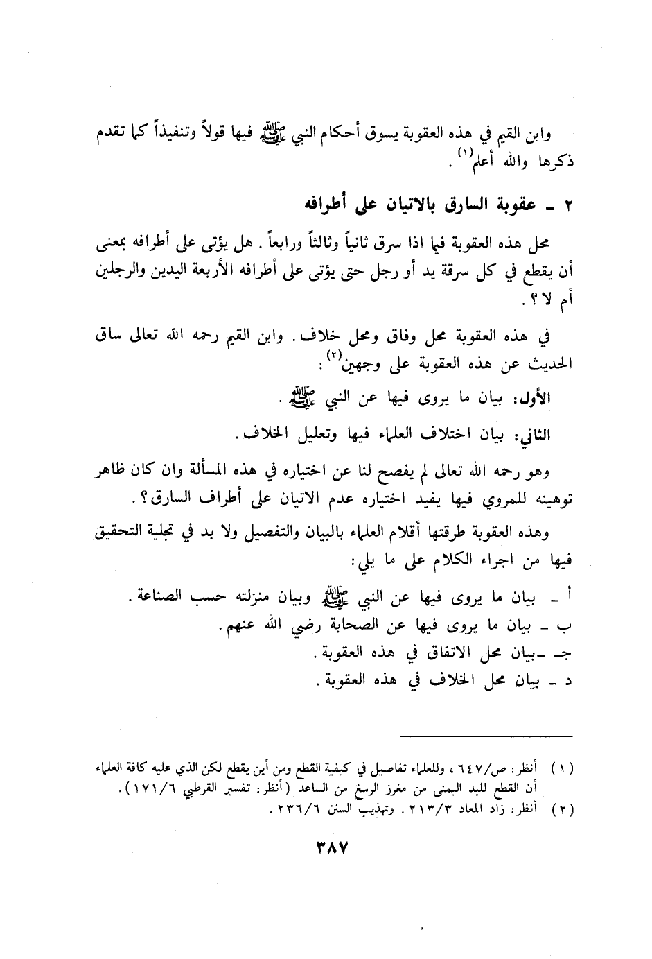 2- عقوبة السارق بالإتيان على أطرافه