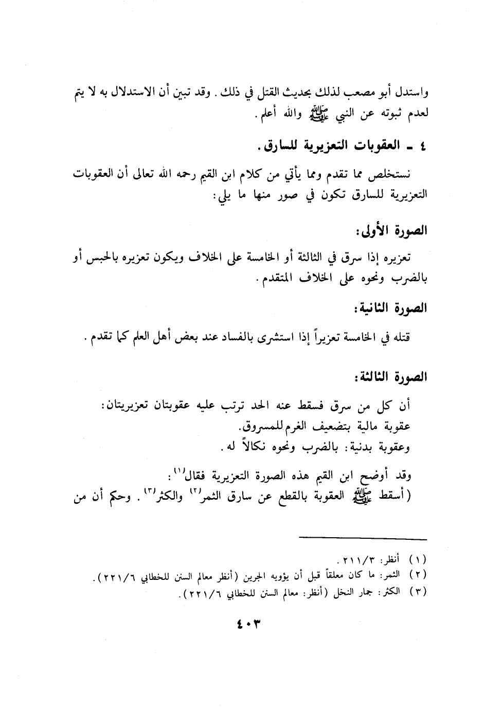 أن كل من سرق فسقط عنه الحد ترتب عليه عقوبتان تعزيريتان: