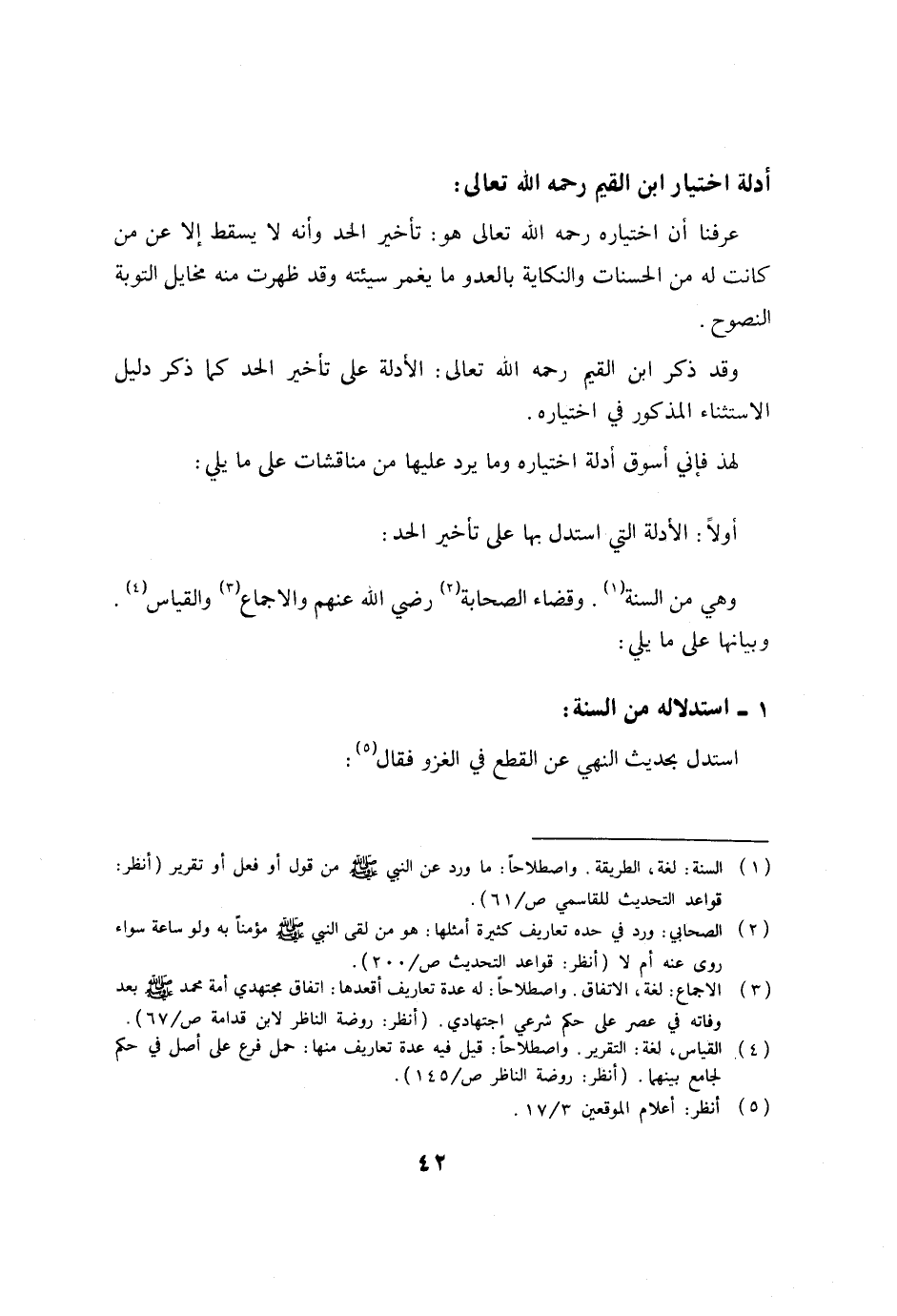 أولاً: الأدلة التي استدل بها على تأخير الحد: