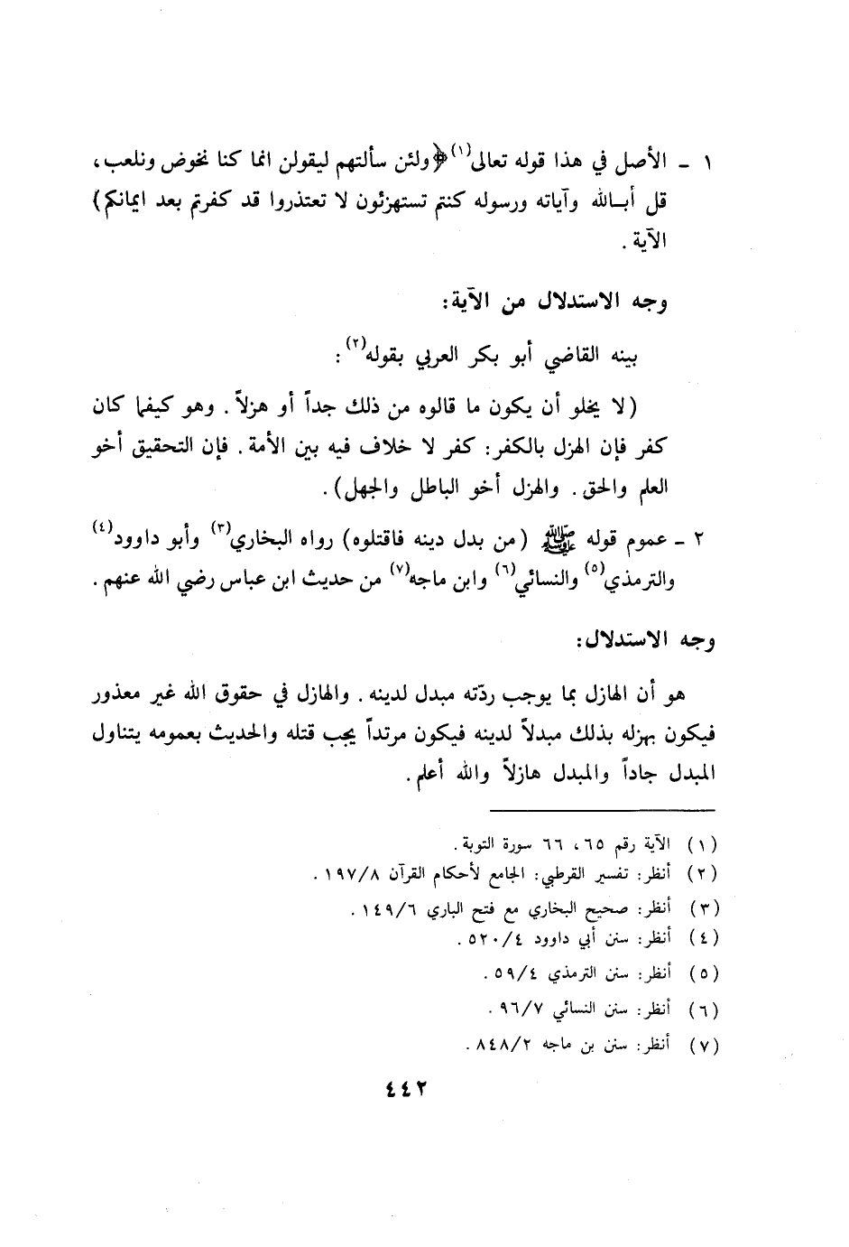 1- الأصل في هذا قوله تعالى (1) (ولئن سألتهم ليقولن إنما كنا نخوض ونلعب، قل أبالله وآياته ورسوله كنتم تستهزئون لا تعتذروا قد كفرتم بعد إيمانكم) الآية.