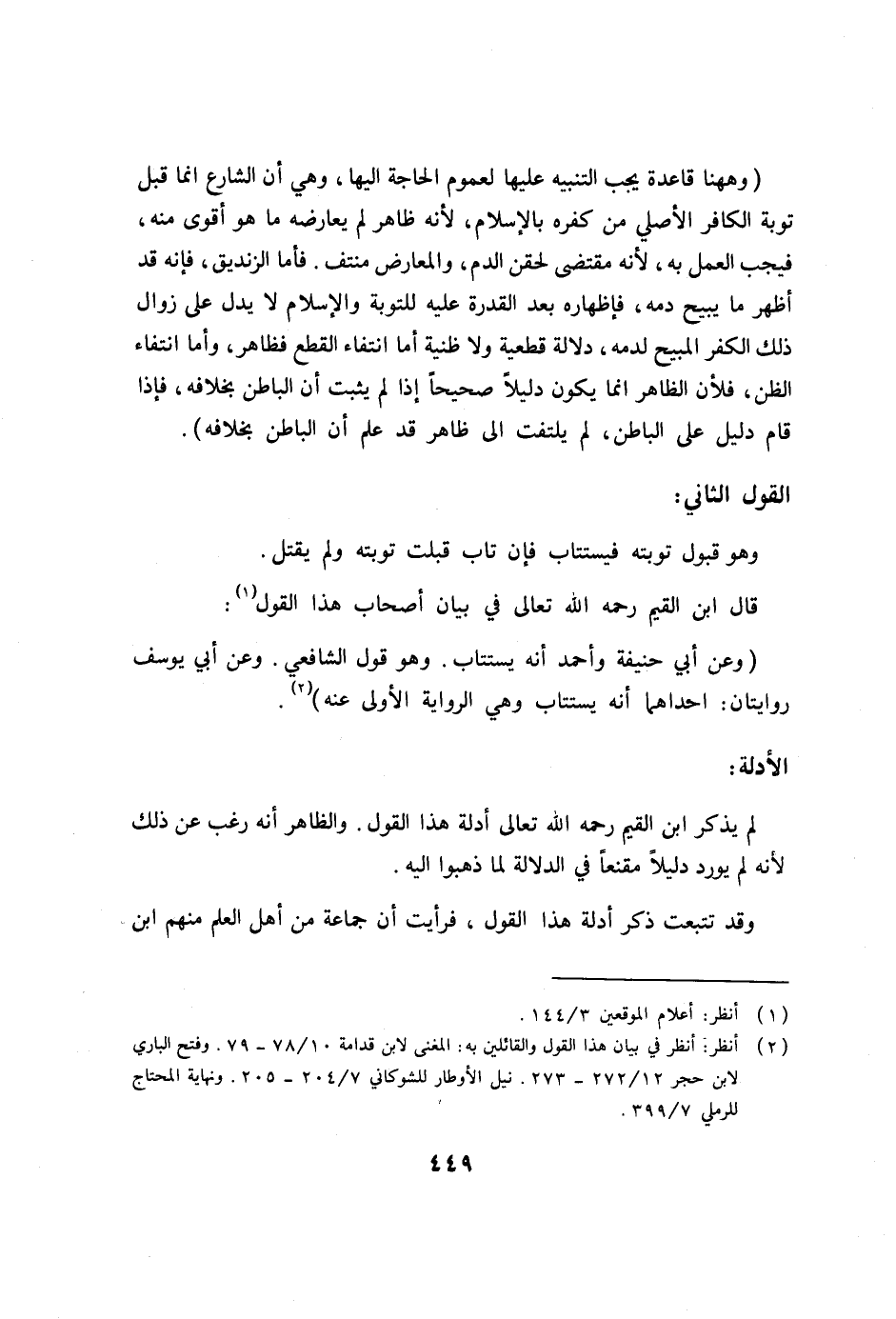 (2) انظر: انظر في بيان هذا القول والقائلين به: المغنى لابن قدامة 10/78 - 79. وفتح الباري لابن حجر 12/272 - 273. نيل الأوطار للشوكاني 7/204 - 205. ونهاية المحتاج للرملي 7/399.