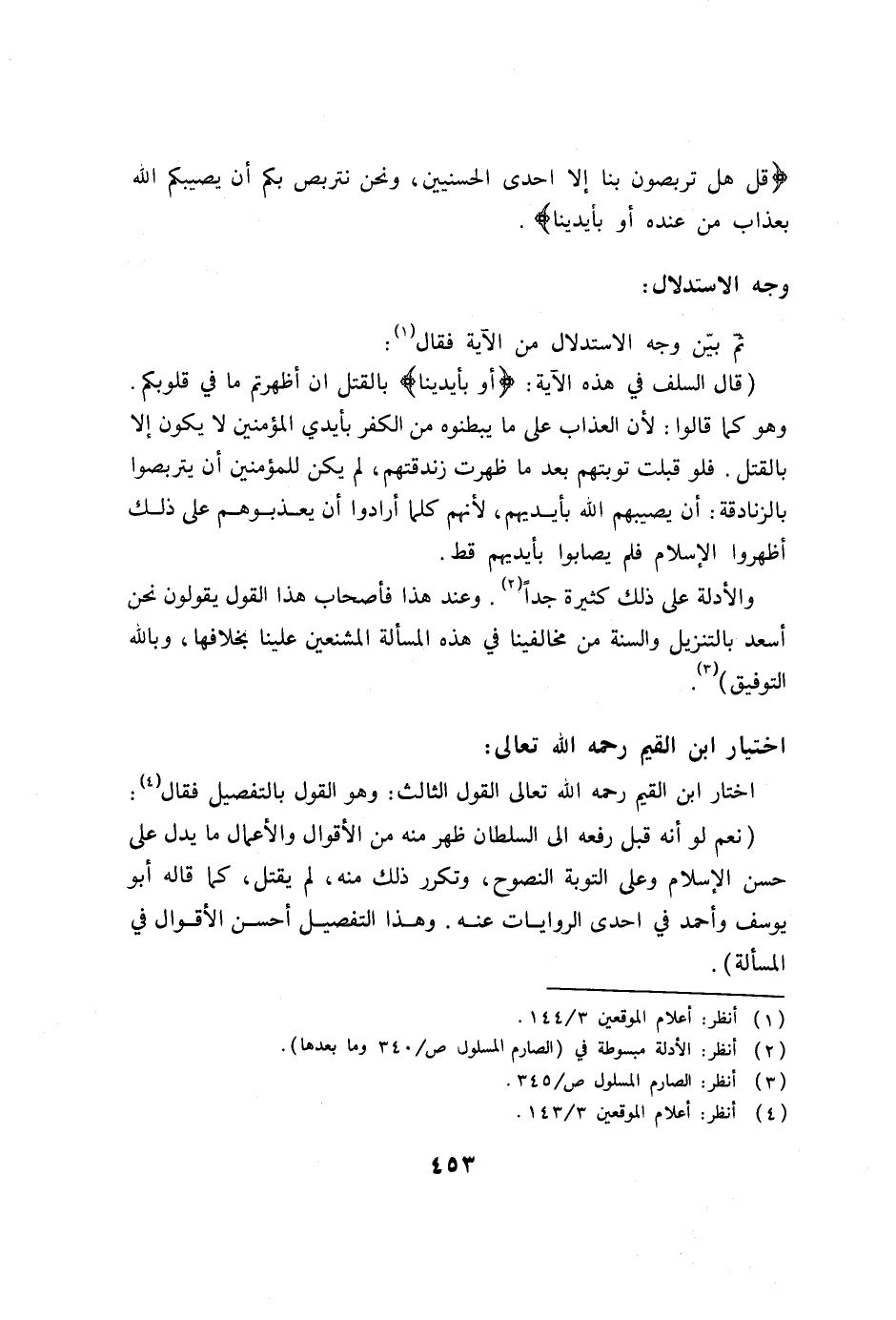 والأدلة على ذلك كثيرة جداً (2) . وعند هذا فأصحاب هذا القول يقولون نحن أسعد بالتنزيل والسنة من مخالفينا في هذه المسألة المشنعين علينا بخلافها، وبالله التوفيق) (3) .