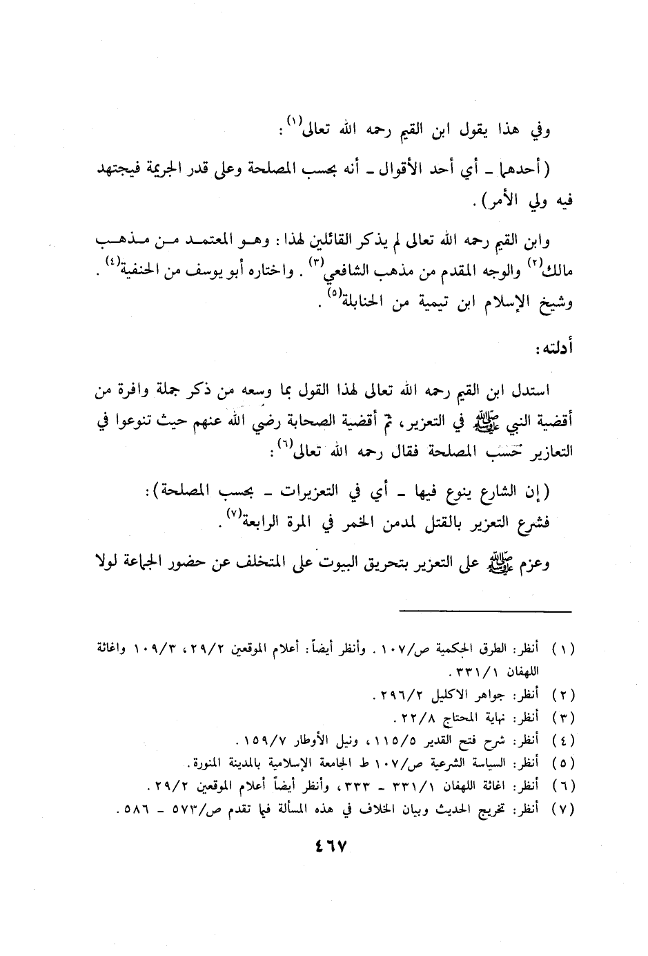 (إن الشارع ينوع فيها - أي في التعزيرات- بحسب المصلحة) :