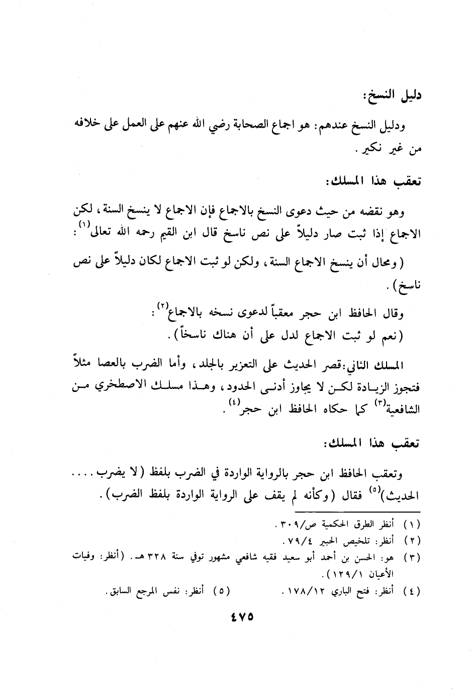 ودليل النسخ عندهم: هو إجماع الصحابة رضي الله عنهم على العمل على خلافه من غير نكير.