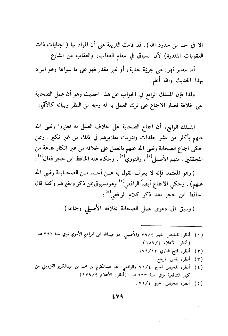 (4) انظر: تلخيص الحبير 4/79 والرافعي: هو عبد الكريم بن محمد بن عبد الكريم القزويني من كبار الشافعية توفي سنة 623 هـ. (انظر: الأعلام 4/179) .
