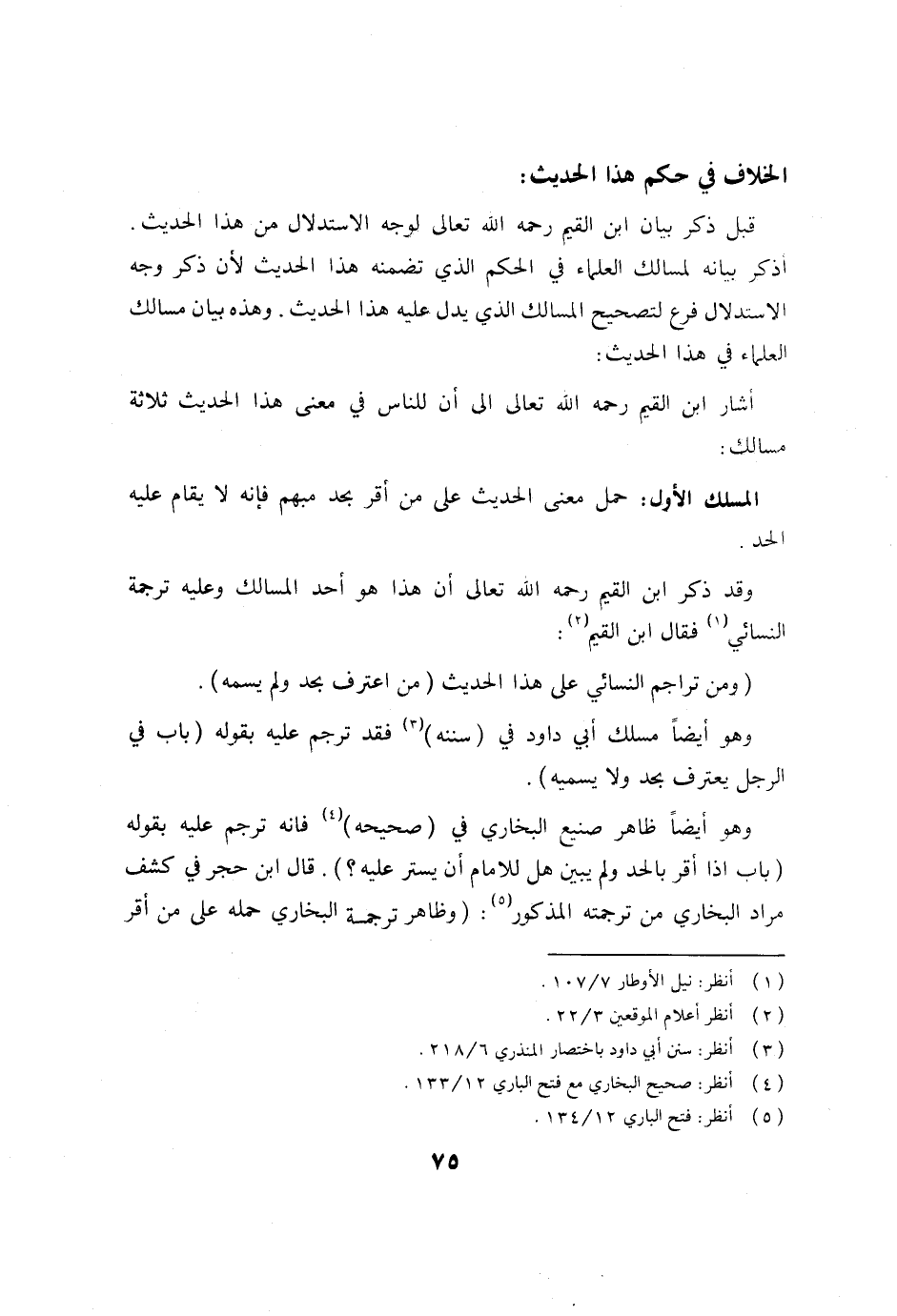 وقد ذكر ابن القيم رحمه الله تعالى أن هذا هو أحد المسالك وعليه ترجمة النسائي (1) فقال ابن القيم (2) :