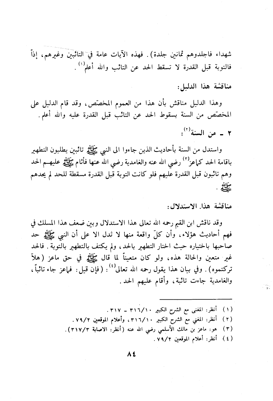 (2) انظر: المغني مع الشرح الكبير 10/316، وأعلام الموقعين 2/79. (3) هو: ماعز بن مالك الأسلمي رضي الله عنه (انظر: الإصابة 3/317) . (4) انظر: أعلام الموقعين 2/79.