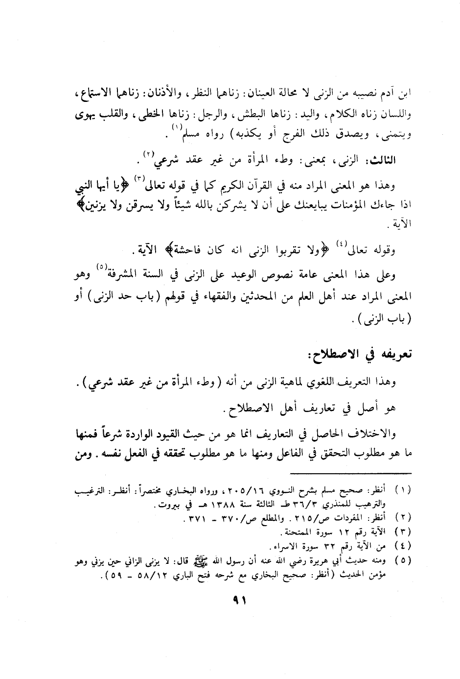 وعلى هذا المعنى عامة نصوص الوعيد على الزنى في السنة المشرفة (5) وهو المعنى المراد عند أهل العلم من المحدثين والفقهاء في قولهم (باب حد الزنى) أو (باب الزنى) .