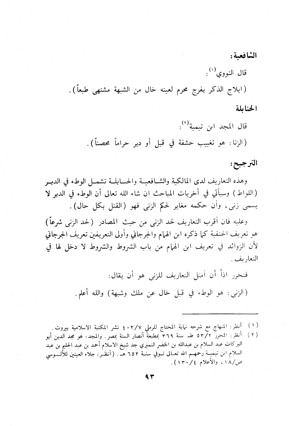 وعليه فإن أقرب التعاريف لحد الزنى من حيث المصادر (لحد الزنى شرعاً)