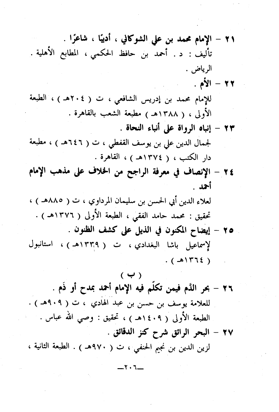 22- الأم: للإمام محمد بن إدريس الشافعي، ت (254 هـ) ، الطبعة الأولى، (1388هـ) مطبعة الشعب بالقاهرة.