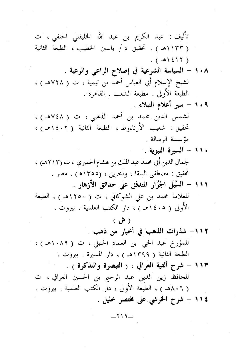 111- السَّيل الجرار المتدفق على حدائق الأزهار: للعلامة محمد بن علي الشوكاني، ت (1250هـ) ، الطبعة الأولى (1405 هـ) ، دار الكتب العلمية. بيروت.