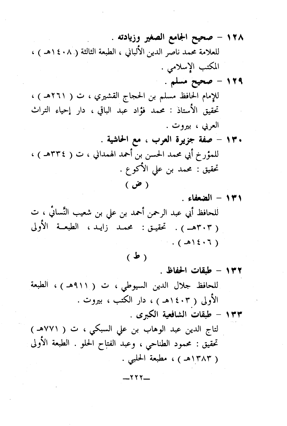129- صحيح مسلم. للإمام الحافظ مسلم بن الحجاج، القشيري، ت (261 هـ) ، تحقيق الأستاذ: محمد فؤاد عبد الباقي، دار إحياء التراث العربي، بيروت.