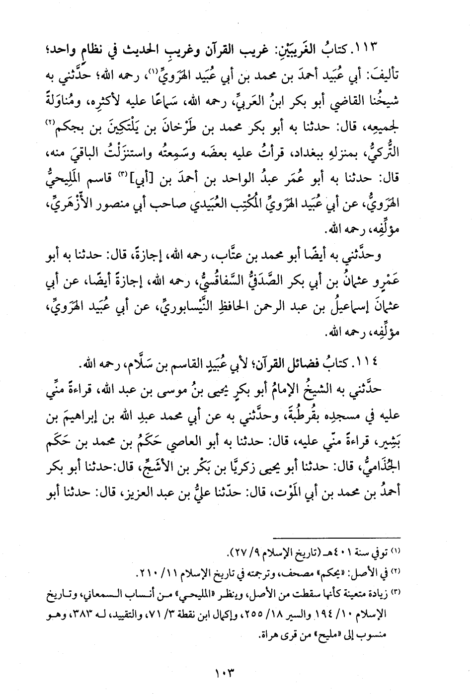 وحدّثني به أيضا أبو محمد بن عتّاب، رحمه الله، إجازة، قال: حدثنا به أبو عمرو عثمان بن أبي بكر الصّدفيّ السّفاقسيّ، رحمه الله، إجازة أيضا، عن أبي عثمان إسماعيل بن عبد الرحمن الحافظ النّيسابوريّ، عن أبي عبيد الهرويّ، مؤلّفه، رحمه الله.