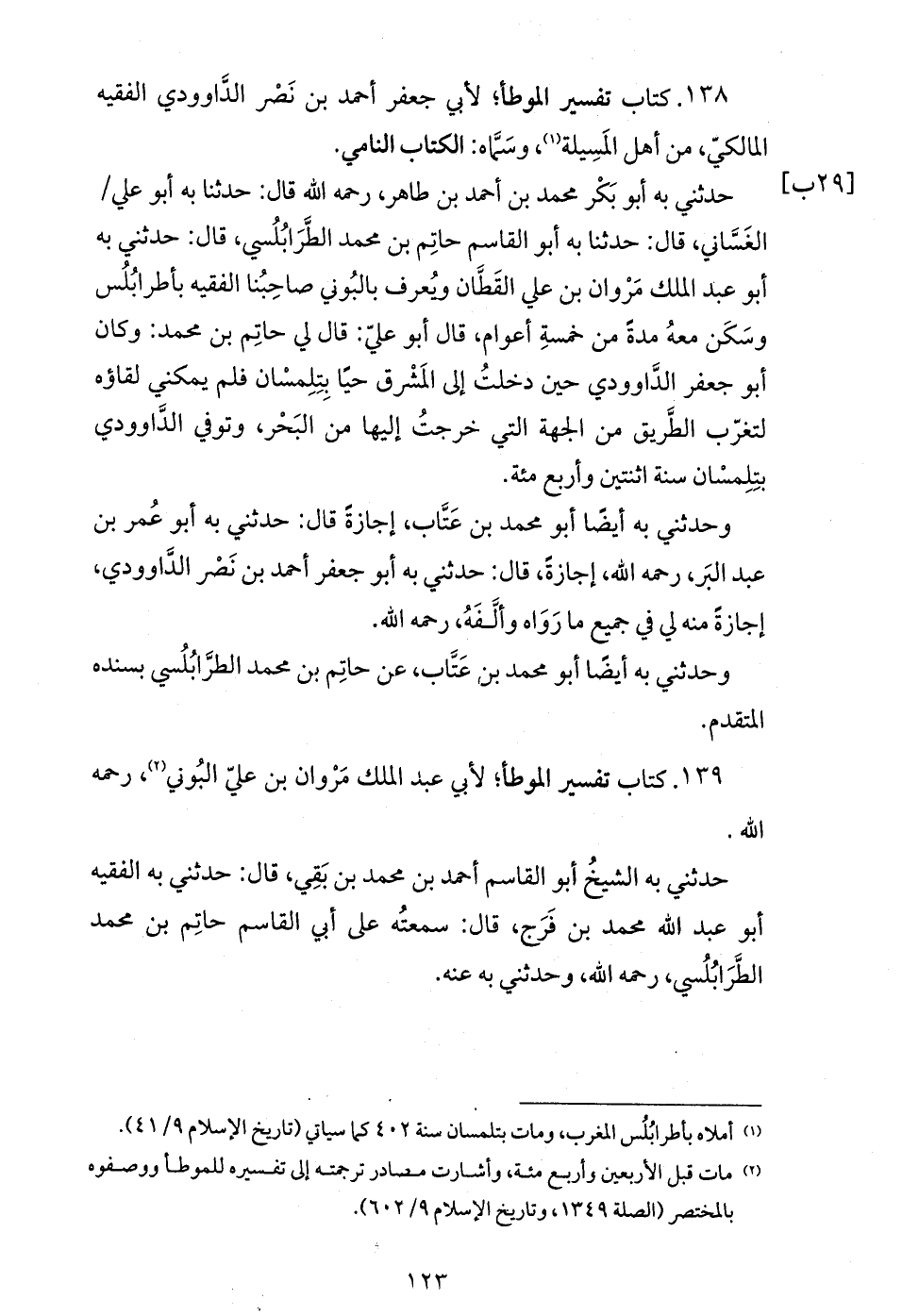 (¬2) مات قبل الأربعين وأربع مئة، وأشارت مصادر ترجمته إلى تفسيره للموطأ ووصفوه بالمختصر (الصلة 1349، وتاريخ الإسلام 9/ 602).