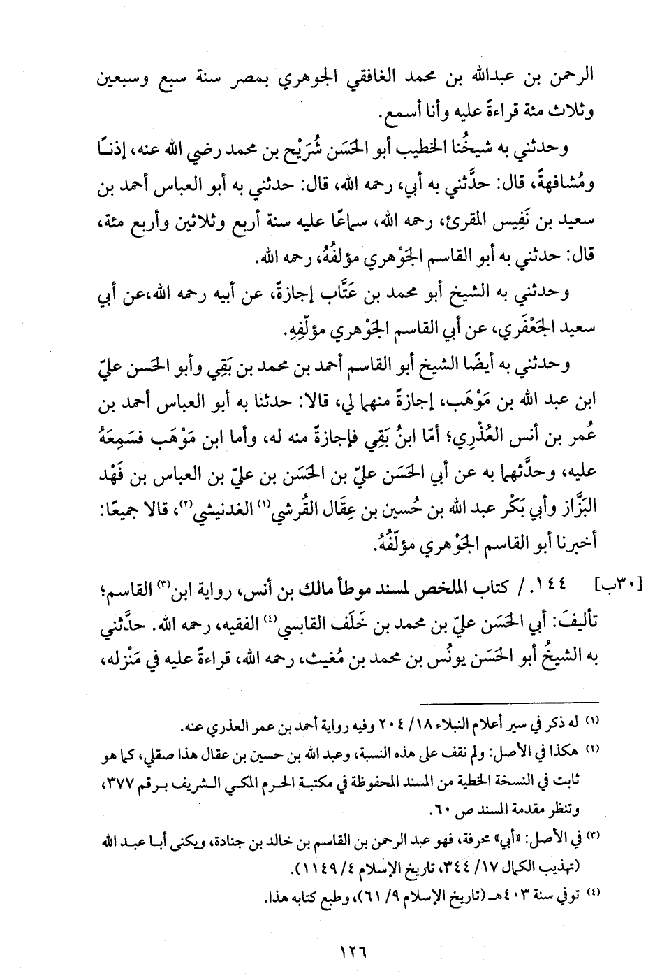 144. / كتاب الملخص لمسند موطأ مالك بن أنس، رواية ابن (¬3) القاسم؛