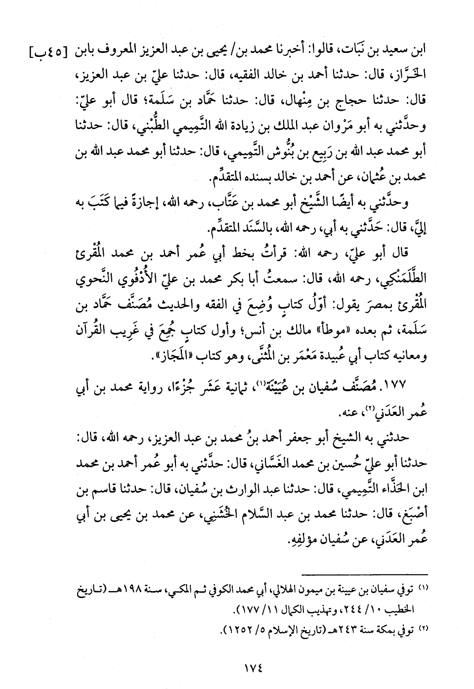 (¬1) توفي سفيان بن عيينة بن ميمون الهلالي، أبي محمد الكوفي ثم المكي، سنة 198 هـ (تاريخ الخطيب 10/ 244، وتهذيب الكمال 11/ 177).