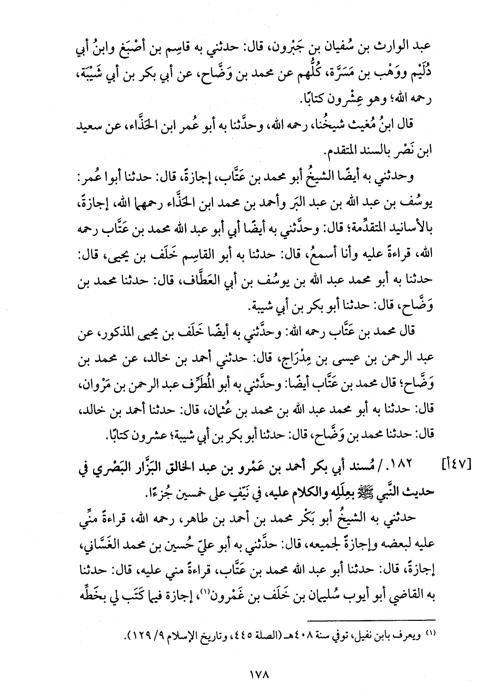 182. / مسند أبي بكر أحمد بن عمرو بن عبد الخالق البزّار البصري في