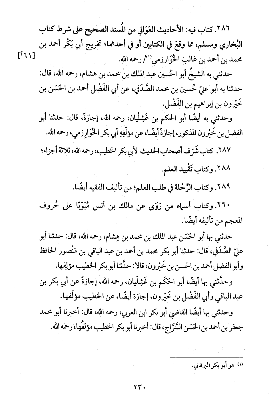 287. كتاب شرف أصحاب الحديث لأبي بكر الخطيب، رحمه الله، ثلاثة أجزاء؛