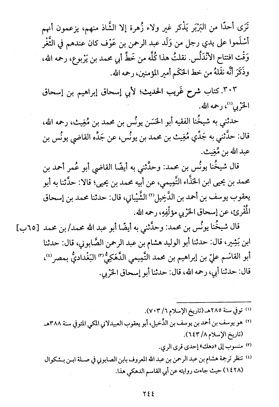 قال شيخنا يونس بن محمد: وحدّثني به أيضا أبو عبد الله محمد / بن محمد ابن بشير، قال: حدثنا أبو الوليد هشام بن عبد الرحمن الصّابوني، قال: حدثنا أبو القاسم عليّ بن إبراهيم بن محمد التّميمي الدّهكيّ (¬3) البغداديّ بمصر (¬4)، قال: حدثنا أبي، رحمه الله، قال: حدثنا أبو إسحاق الحربي.