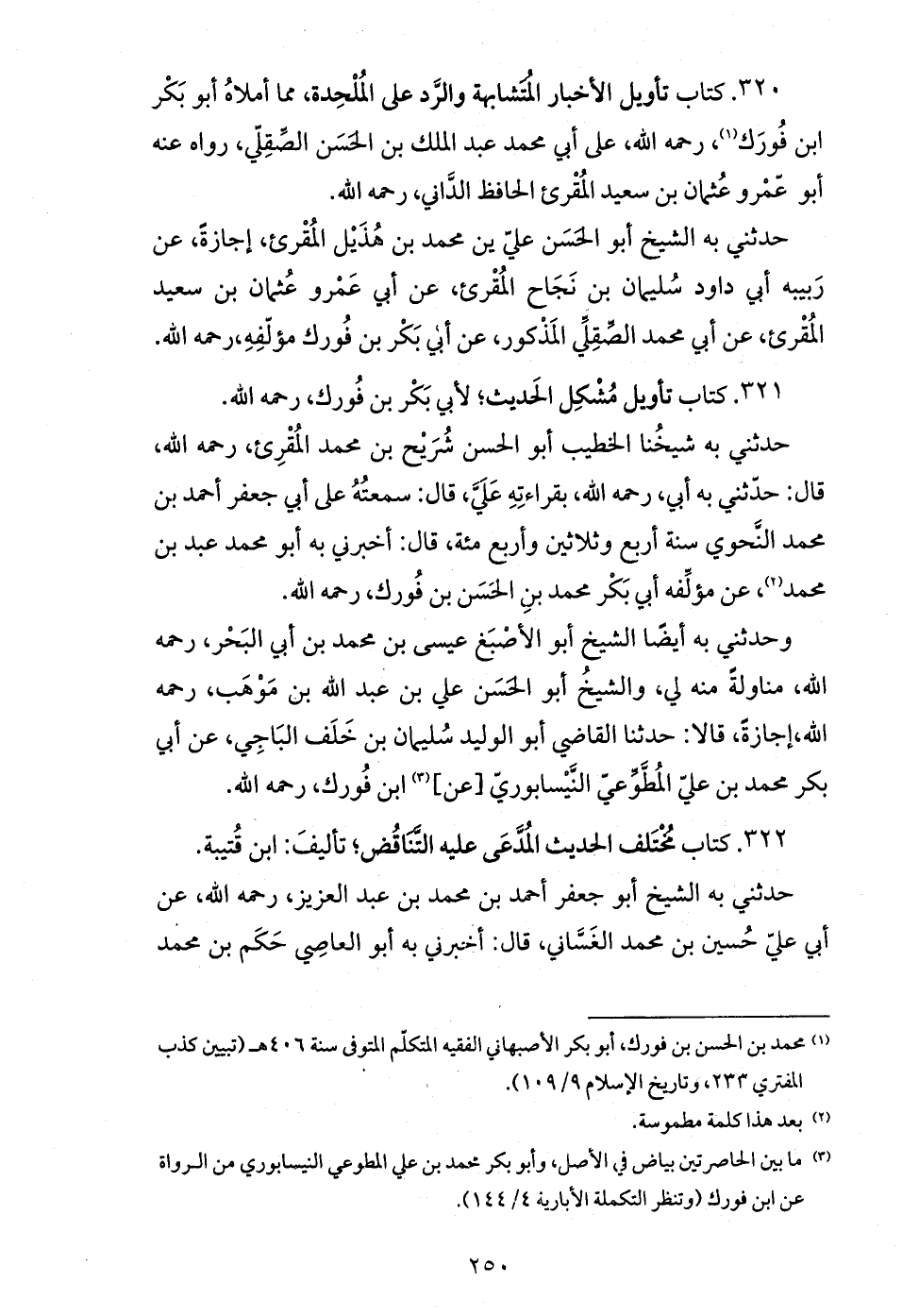 (¬1) محمد بن الحسن بن فورك، أبو بكر الأصبهاني الفقيه المتكلّم المتوفى سنة 406 هـ (تبيين كذب المفتري 233، وتاريخ الإسلام 9/ 109).