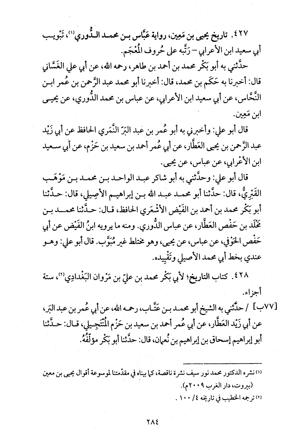 427. تاريخ يحيى بن معين،