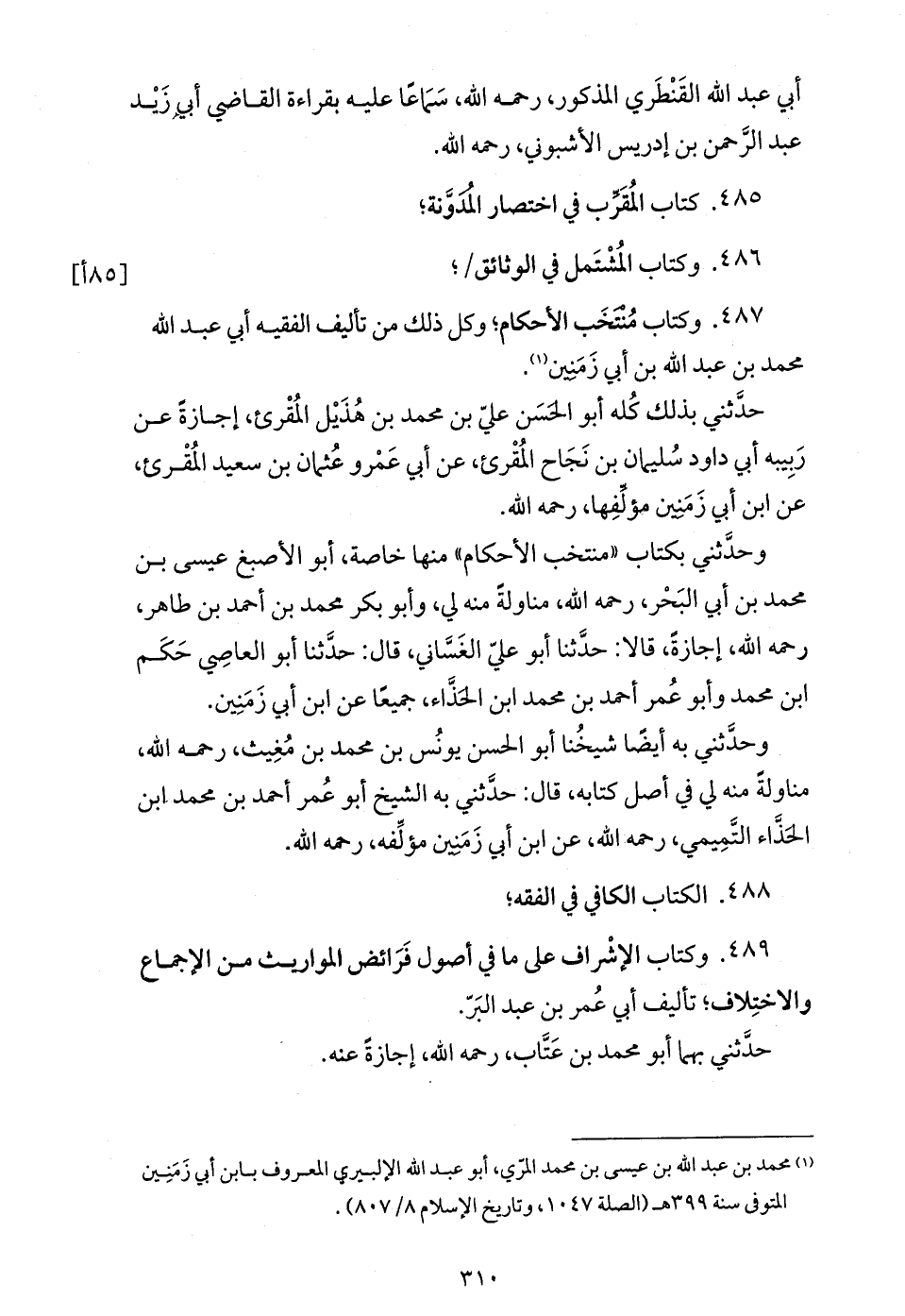 (¬1) محمد بن عبد الله بن عيسى بن محمد المرّي، أبو عبد الله الإلبيري المعروف بابن أبي زمنين المتوفى سنة 399 هـ (الصلة 1047، وتاريخ الإسلام 8/ 807).