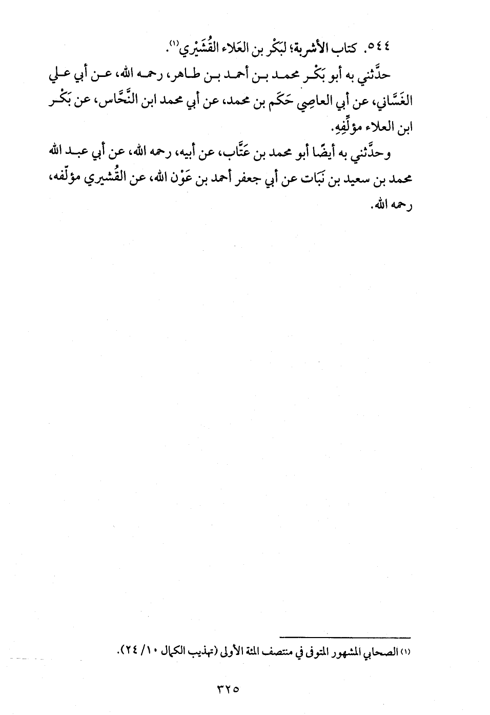 وحدّثني به أيضا أبو محمد بن عتّاب، عن أبيه، رحمه الله، عن أبي عبد الله محمد بن سعيد بن نبات عن أبي جعفر أحمد بن عون الله، عن القشيري مؤلّفه، رحمه الله.
