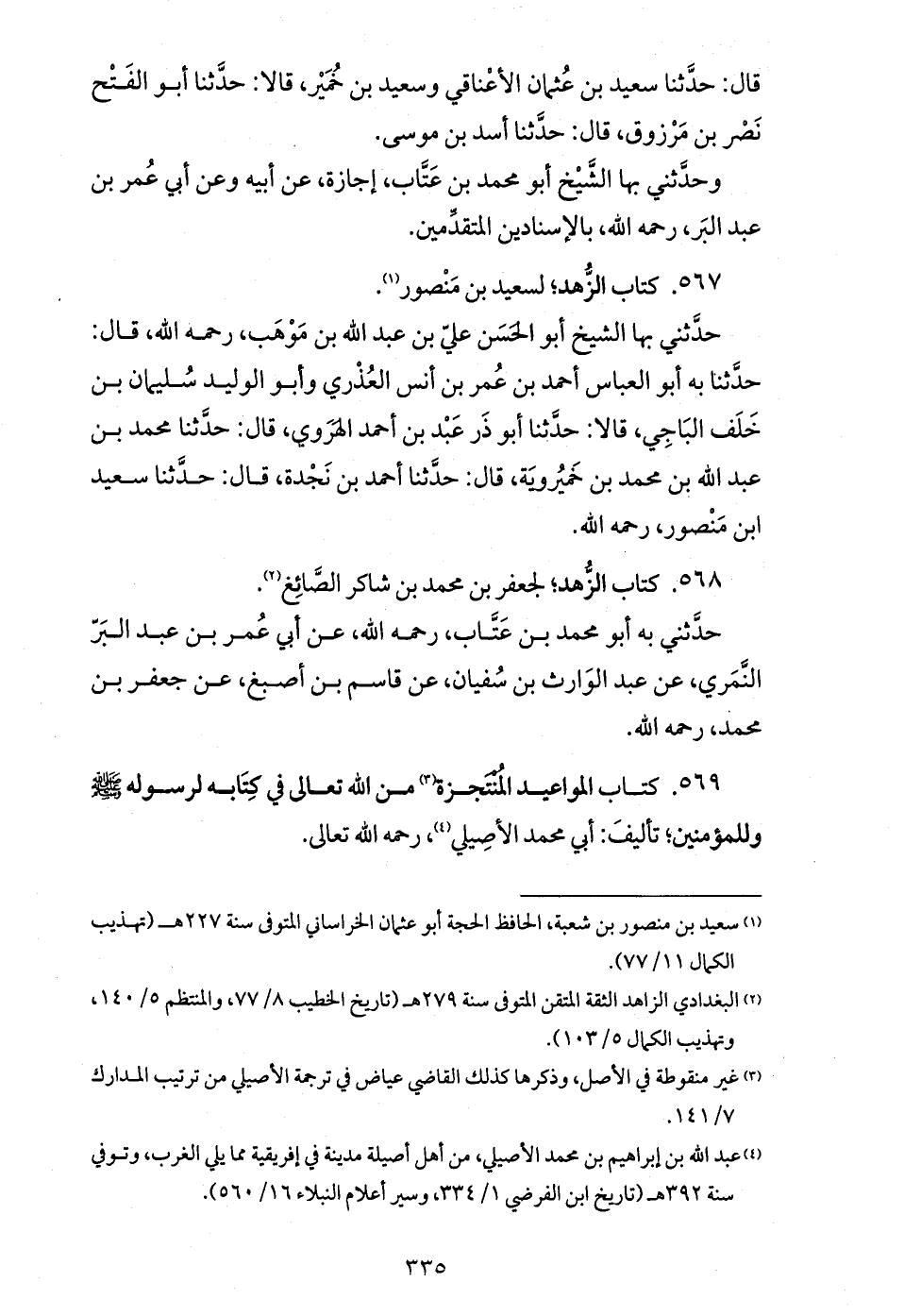 (¬4) عبد الله بن إبراهيم بن محمد الأصيلي، من أهل أصيلة مدينة في إفريقية مما يلي الغرب، وتوفي سنة 392 هـ (تاريخ ابن الفرضي 1/ 334، وسير أعلام النبلاء 16/ 560).