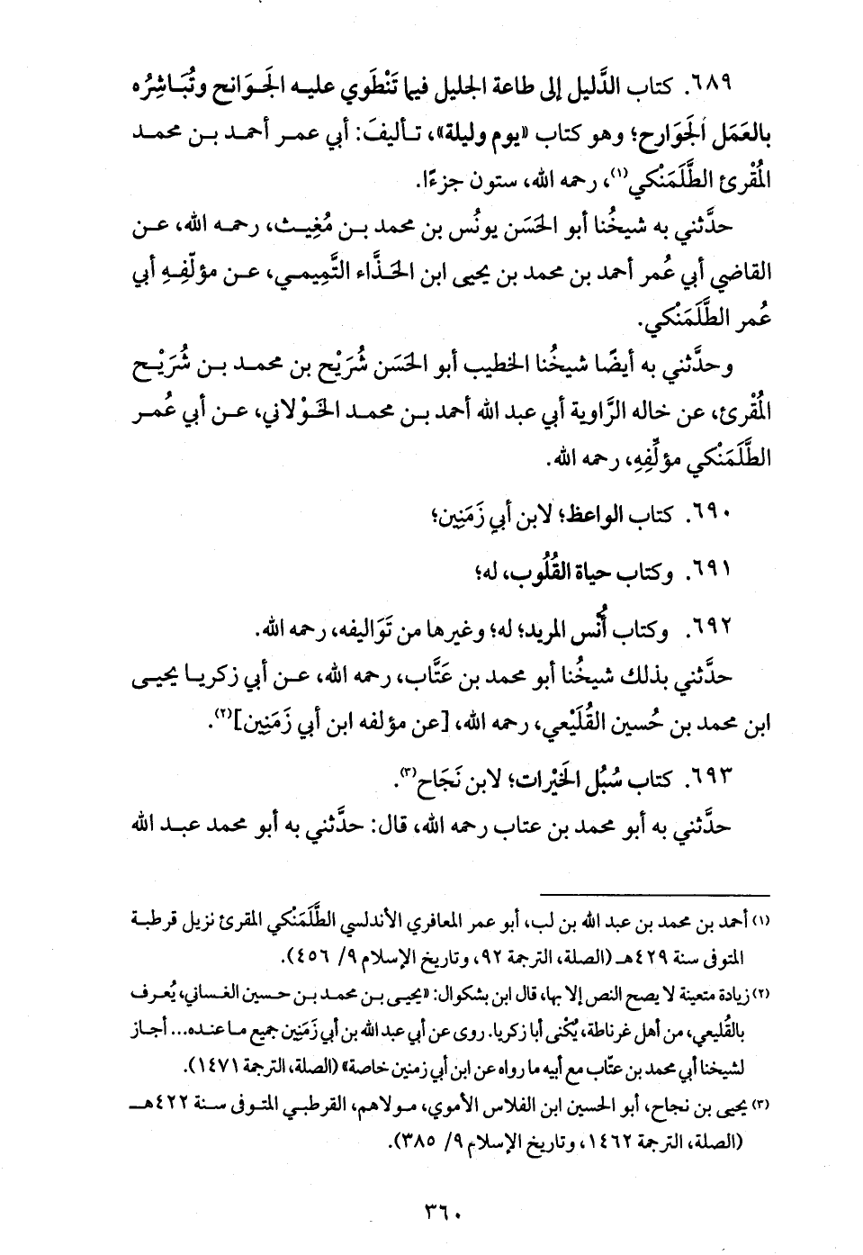 حدّثني به شيخنا أبو الحسن يونس بن محمد بن مغيث، رحمه الله، عن القاضي أبي عمر أحمد بن محمد بن يحيى ابن الحذّاء التّميمي، عن مؤلّفه أبي عمر الطّلمنكي.