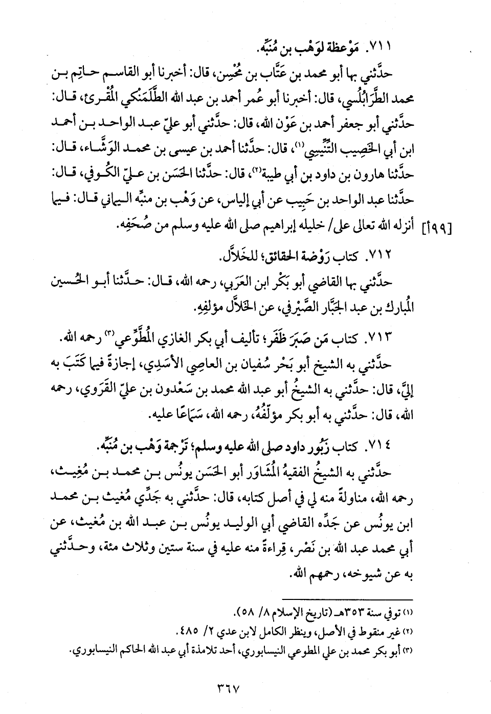 711. موعظة لوهب بن منبّه.