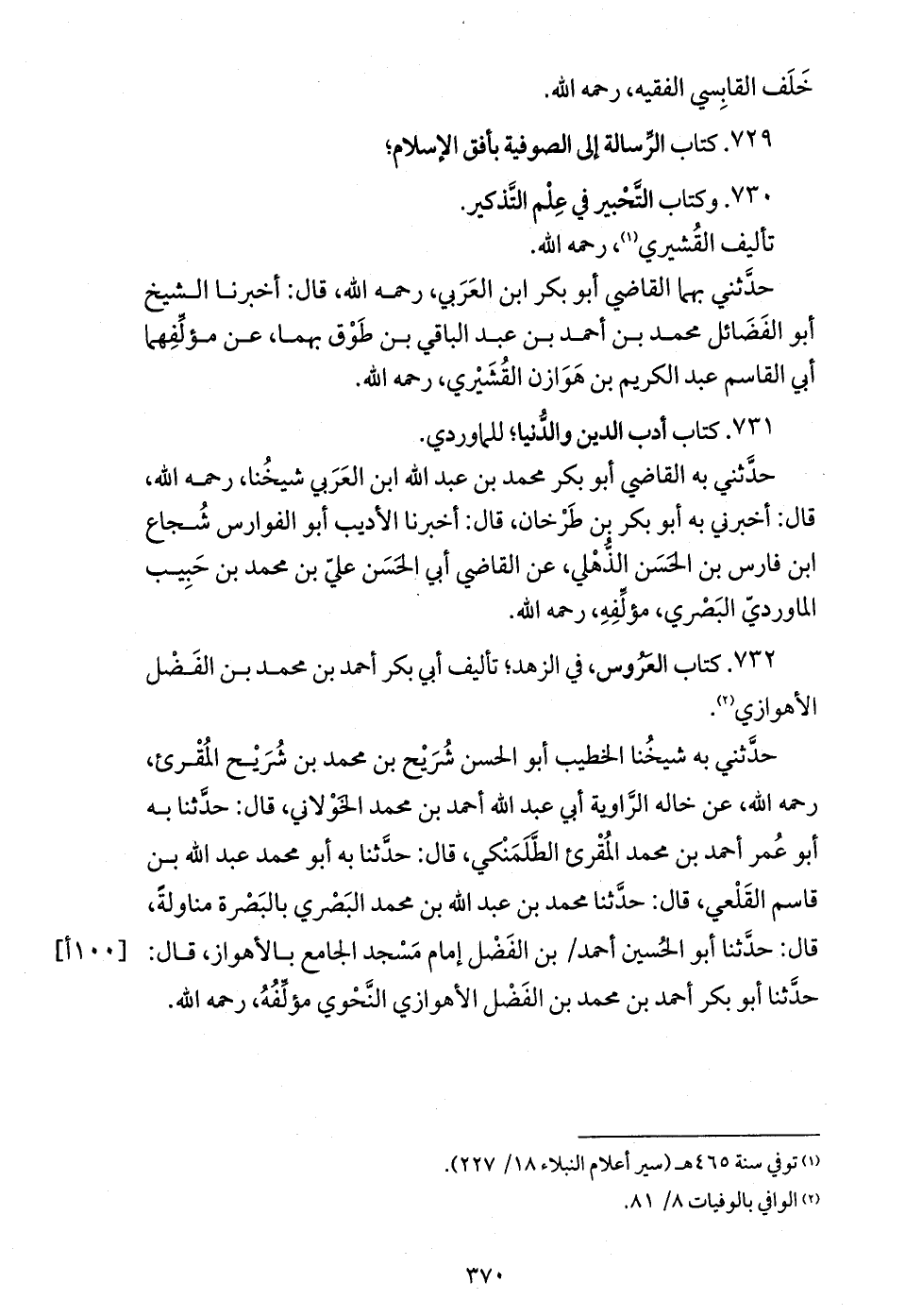 حدّثني بهما القاضي أبو بكر ابن العربي، رحمه الله، قال: أخبرنا الشيخ أبو الفضائل محمد بن أحمد بن عبد الباقي بن طوق بهما، عن مؤلّفهما أبي القاسم عبد الكريم بن هوازن القشيري، رحمه الله.