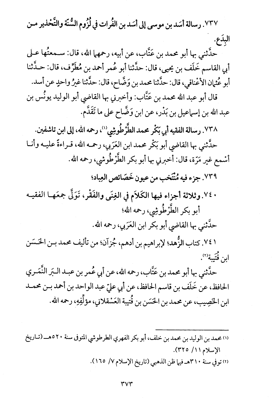 (¬1) محمد بن الوليد بن محمد بن خلف، أبو بكر الفهري الطرطوشي المتوفى سنة 520 هـ (تاريخ الإسلام 11/ 325).
