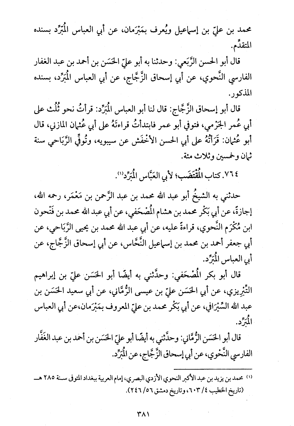 قال أبو الحسن الرّمّاني: وحدّثني به أيضا أبو عليّ الحسن بن أحمد بن عبد الغفّار الفارسي النّحوي، عن أبي إسحاق الزّجّاج، عن المبرّد.